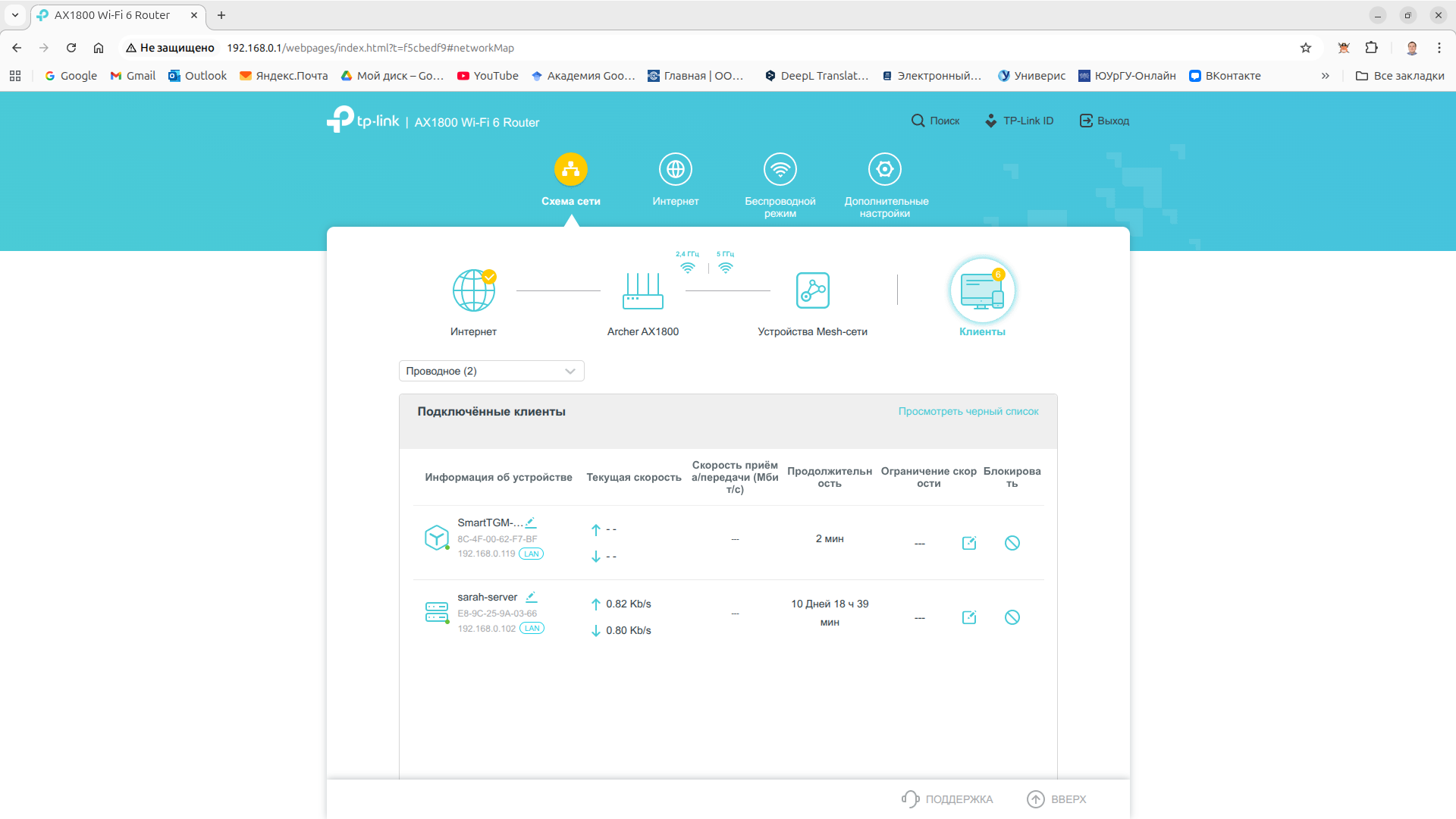 Подключаем устройство к маршрутизатору в локальной сети организации через Ethernet или Wi-Fi. Для подключения к ПО необходимо знать IPv4 адрес устройства, который устройству назначется динамически. Статический IP-адрес можно установить со стороны маршрутизатора. Узнать назначенный IP адрес устрйоству можно с помощью встроенного ПО маршрутизатора/DHCP-сервера (рисунок 4), либо с помощью специализированного ПО: Advanced IP-Scanner.